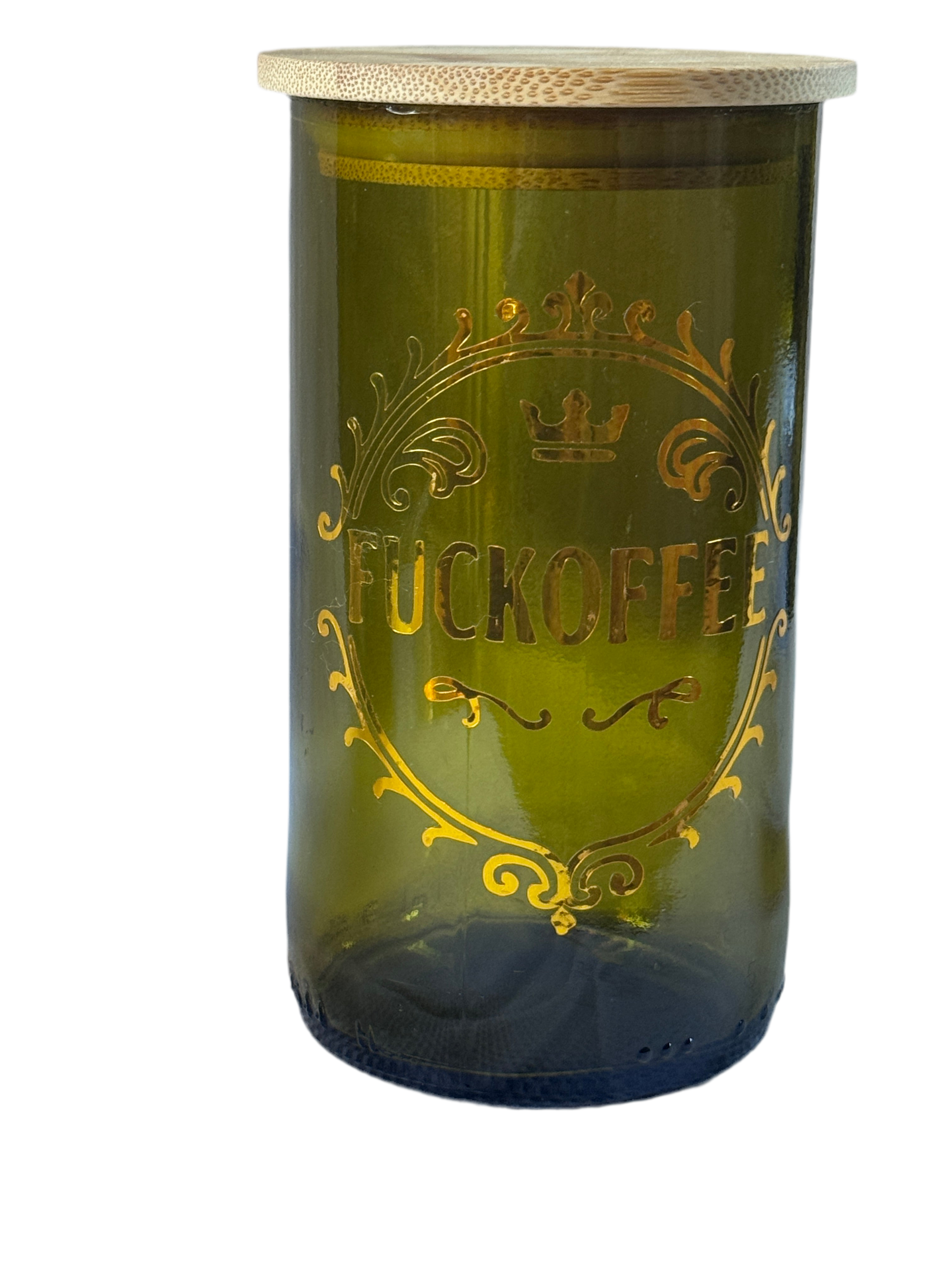Repurposed Wine Bottle Storage Jars - set of 3 - Fuckitea, Fuckoffee & Sugar Tits